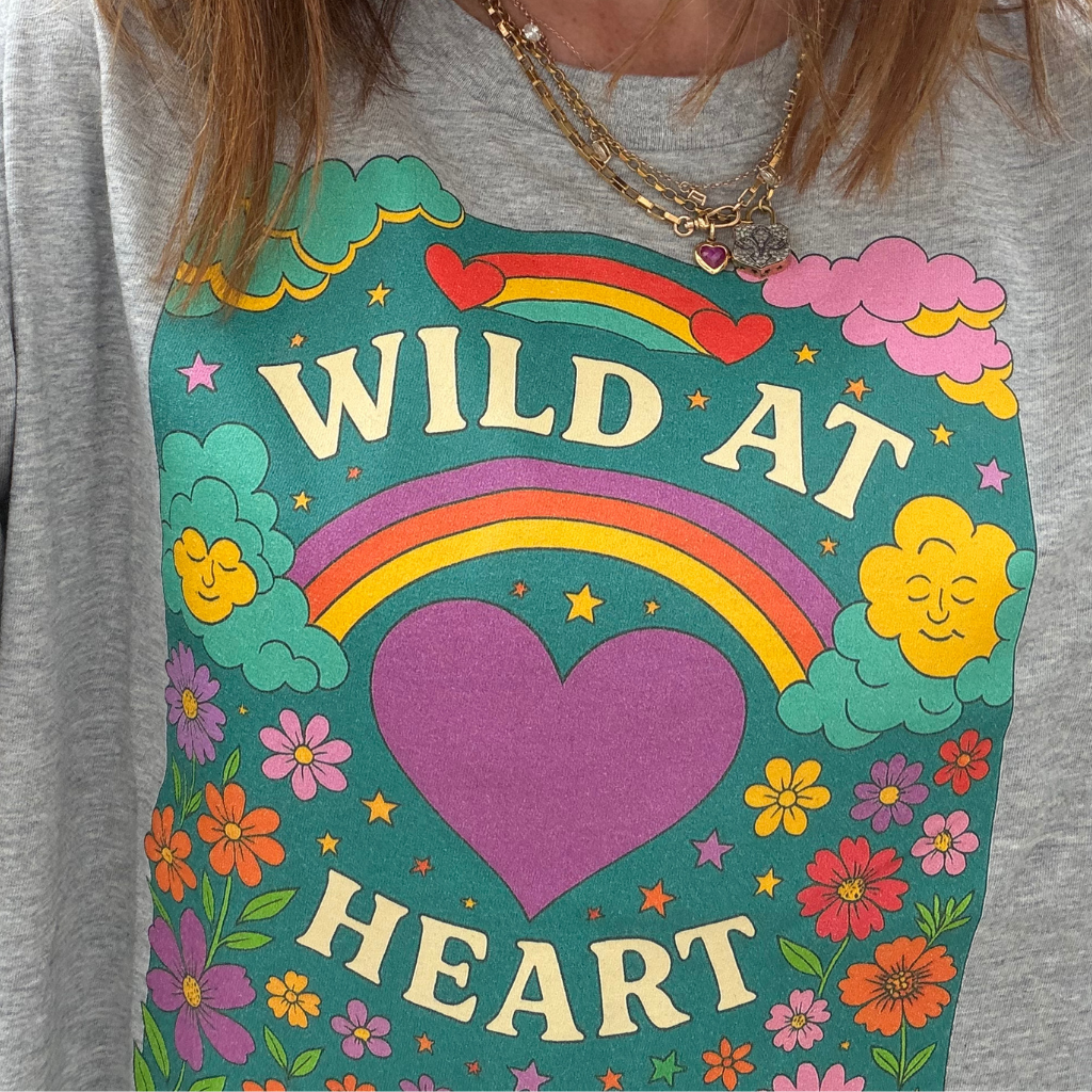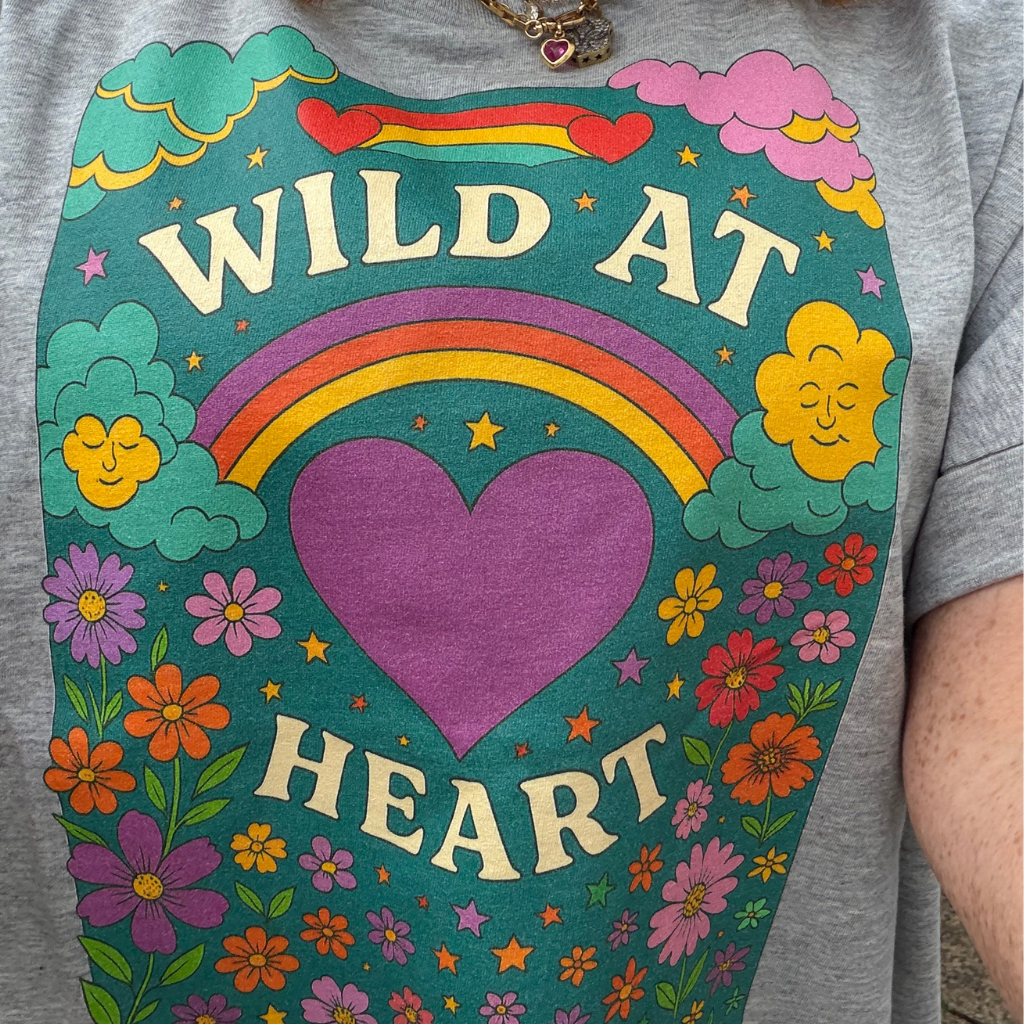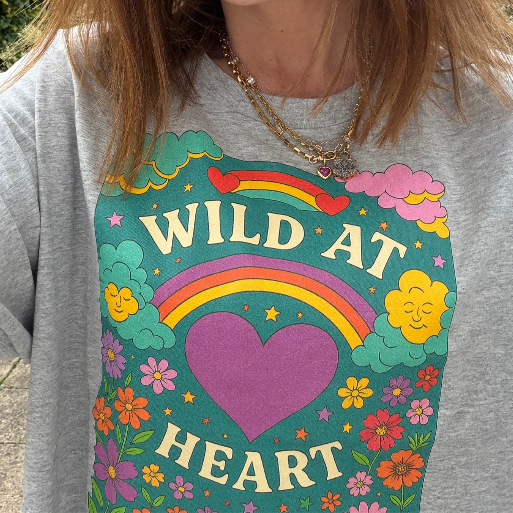 Wild at heart our whimsical beautiful coloured printed t-shirt looks fabulous on and will work so well with your hoodies and cardigans to add that pop of colour we all look for!