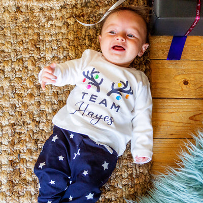 Antlers Team Name Baby Christmas Pyjamas 0-36 Months