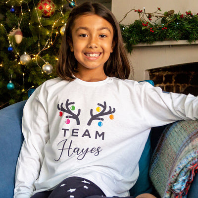 Antlers Team Name Kids Christmas Pyjamas 3-14 Years