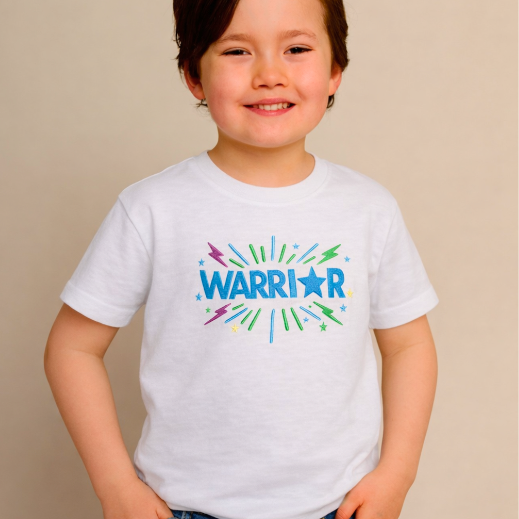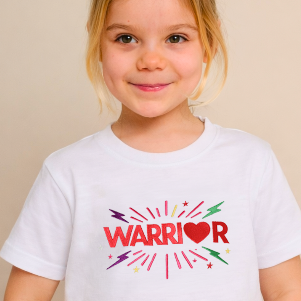 This beautiful children’s t-shirt features our signature embroidered WARRIOR slogan, created as part of our special charity collaboration supporting Sheffield Children’s Hospital.