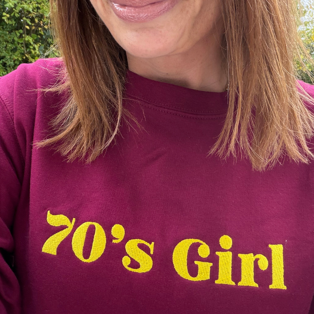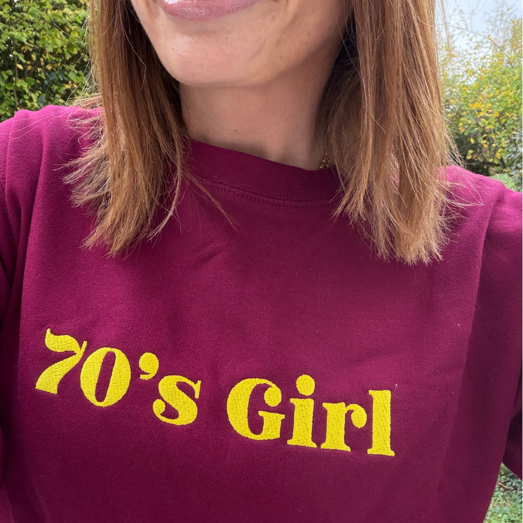 70's, 80's. 90's Girl Yellow embroidery on Burgundy