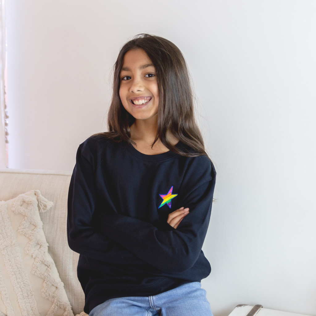 With its smart navy colourway contrasting with a rainbow star, it's the perfect addition to any kids wardrobe.